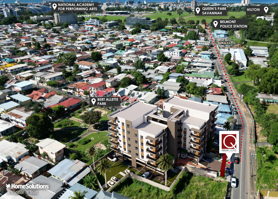 Q Building is uniquely positioned in Belmont, just three blocks from the heart of Port of Spain. This innovative development combines sophisticated architecture with everyday convenience. With direct access to main roads, shopping centers, hospitals, and entertainment, it’s the perfect place to live, work, and play.